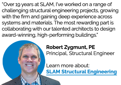 Our diverse team brings unique perspectives and expertise to our integrated architecture, engineering, and construction solutions. Working in the higher education, k-12, healthcare, corporate, justice and sports markets across our nine offices nationwide, SLAM fosters an environment where talent flourishes, ideas are celebrated, and careers are built to last.
